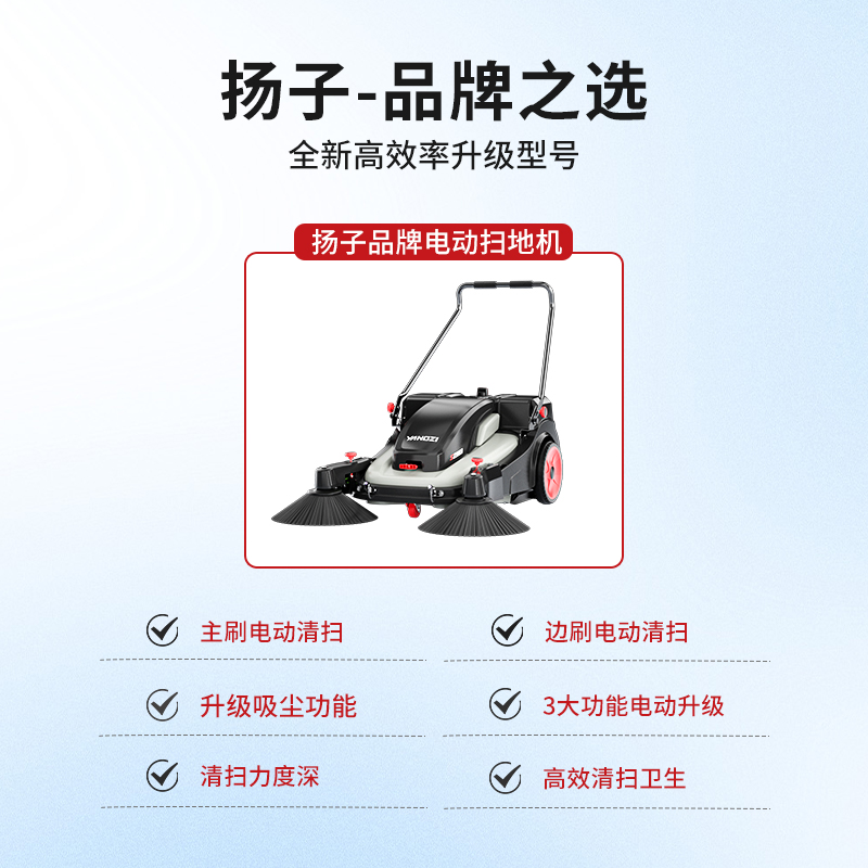 揚子YZ-S2pro手推式電動掃地機全新升級電力驅動清潔效率每小時可達5250平方米,工廠、車間、物業等道路清潔一推即凈。