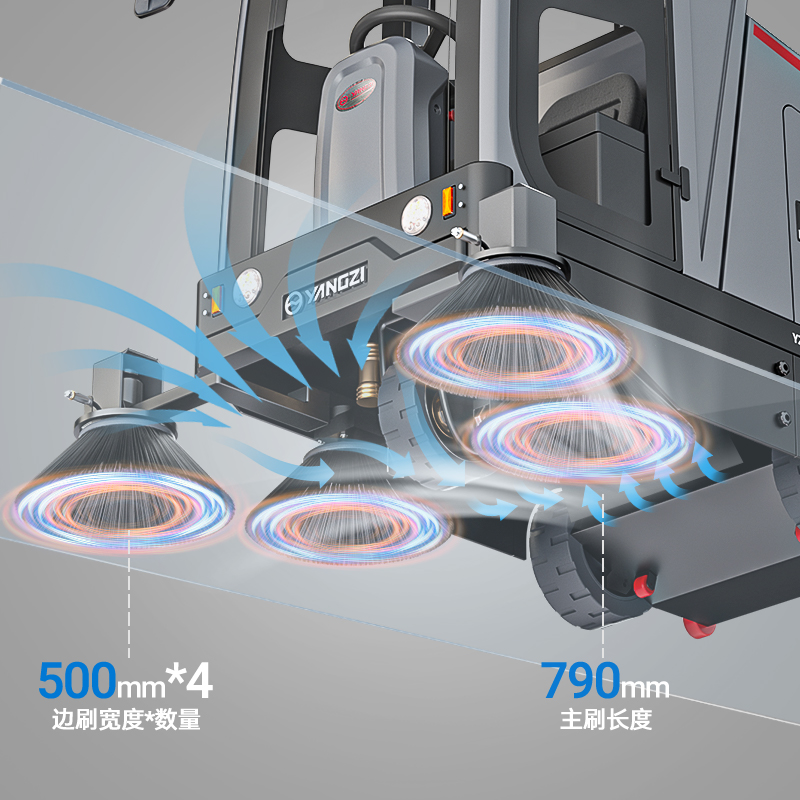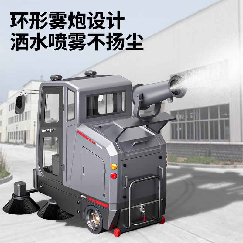 揚子駕駛式掃地機YZ-S10,掃地+吸塵+噴霧控塵,1小時卓越清掃21000㎡,180L集塵箱,150L水箱,大容量無需頻繁注水,全景駕駛夜間操作也安心,模塊化設計一車多用,大噴霧射程遠動力強。